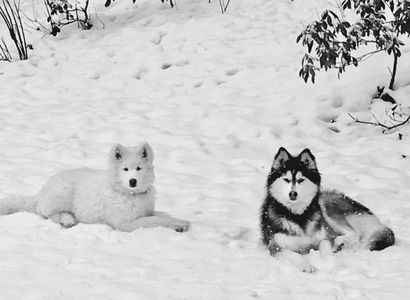 We live on nearly a dozen acres in the woods of NH; we have more bears and moose in our yard than travelling salesman. We fenced in about an acre of lawn, woods and shrub to help ensure that our dogs live close to nature while also being great house pets. It's awesome to watch them learn to hunt (Siberians can stare up a tree for hours), dig (did you know that Huskies will carve out an underground den in Siberia), experience their first snow fall and figure out pack hierarchy with each new member of the family